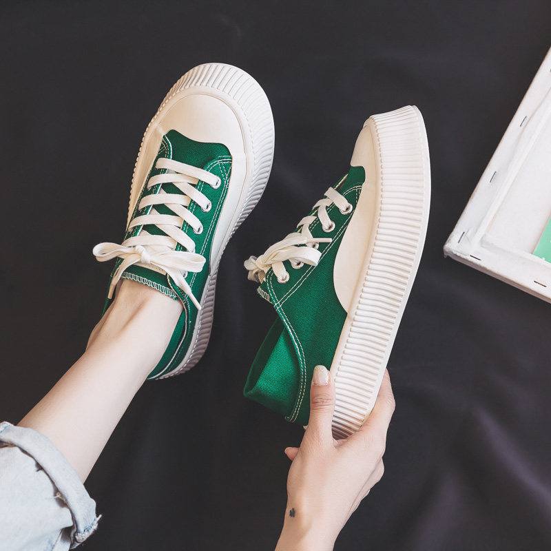 秋季款厚底绿色帆布鞋女鞋2021年新款春秋夏季松糕球鞋休闲秋鞋热门设计联盟服务商
