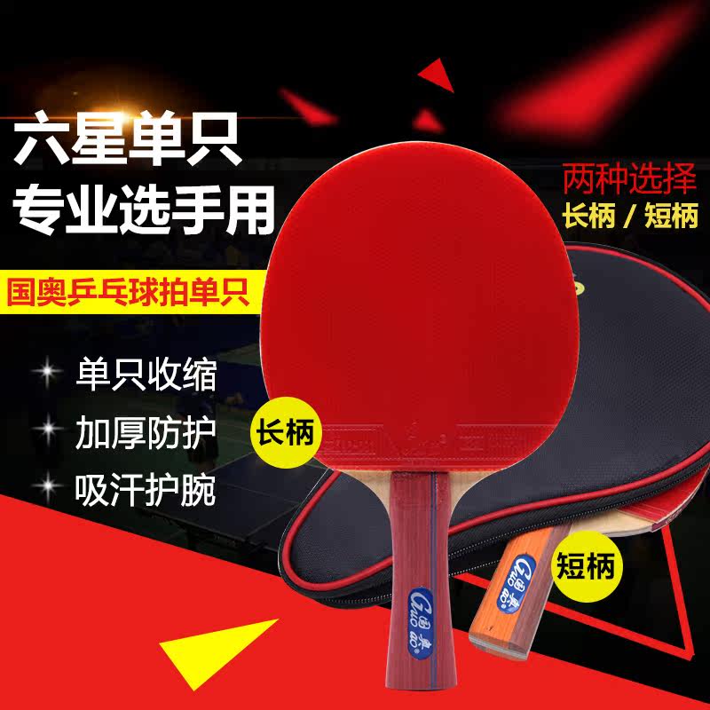 GUOAO正品乒乓球拍单拍6星级正面反胶红黑纳米碳王套胶ppqp 包邮热门设计联盟服务商